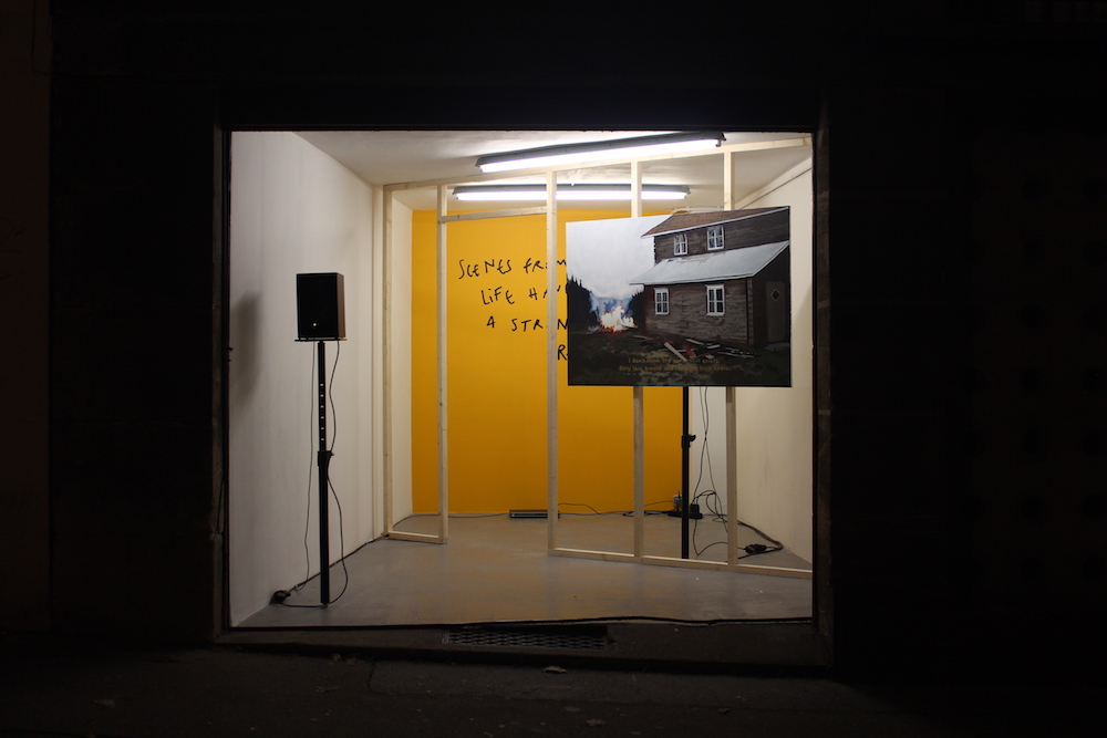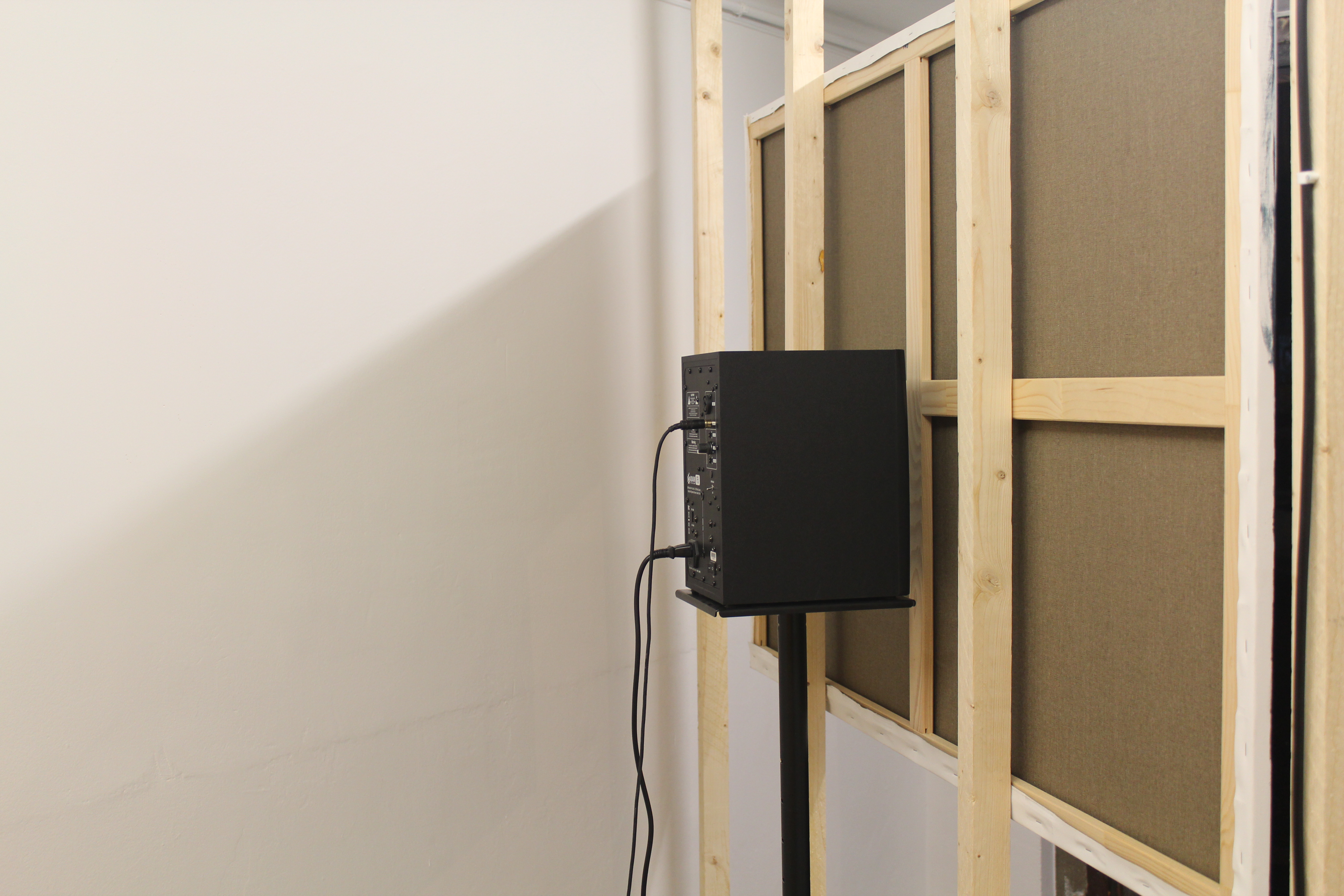 Les Cigales Caniculaires est diffusé durant les heures de fermeture de l’exposition. L’installation sonore est écoutable depuis le trottoir face à la galerie. Le son de la cigale caniculaire est une interprétation réalisée avec un synthétiseur analogique.